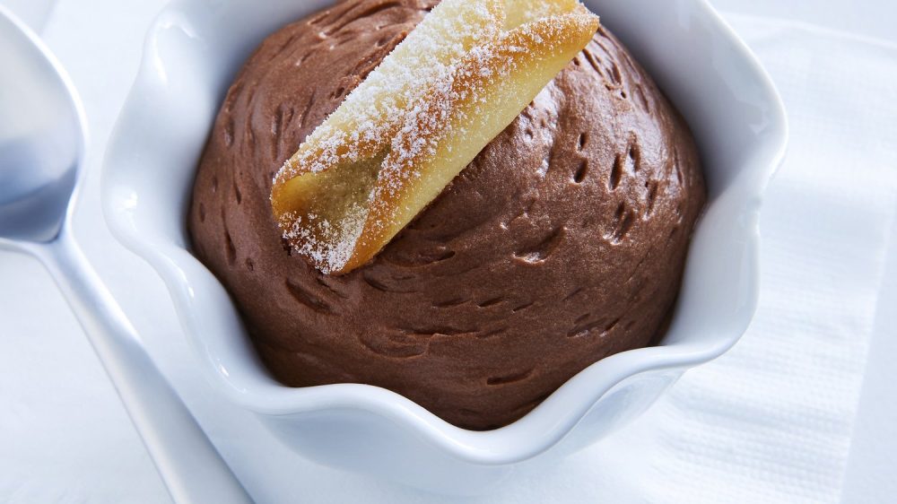 This creamy chocolate mousse does not include any eggs.