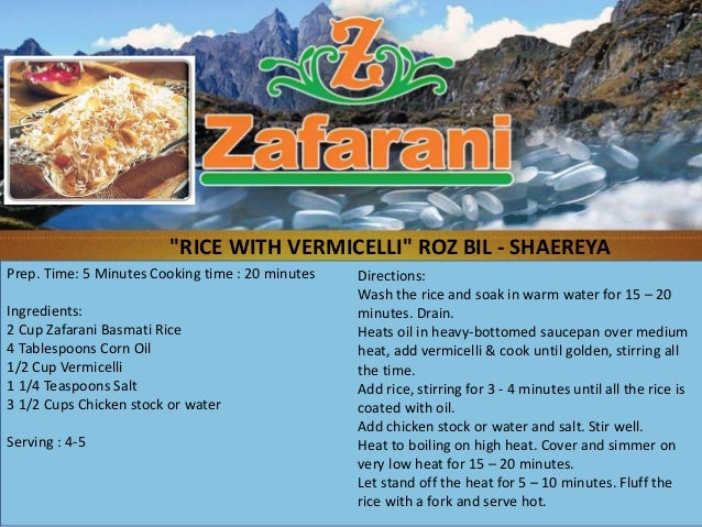 I'ts popularity and sales have expended beyond the south asian stores to many major store chains and club stores. This is part of our comprehensive database of 40,000 foods including foods from hundreds of popular restaurants and thousands of brands. Some of them even can eat rice for the whole day or twice a day. Pure zafarani pure zafarani rice basmati rice. This amount supplies approximately 6 to 7 percent of a man's recommended daily. Zafarani indian basmati vegetarian rice recipezafarani indian basmati vegetarian rice recipe latest 2014 image pictureszafrani pulao vegetarian recipe by. A delicious meal with ginger, vegetables and soy sauce. The eggs and soy sauce and cook stirring constantly until5 cup of zafarani basmati rice (cooked & cold) the eggs are the size of peas. Many people love to have rice in their meals. This is zafarani basmati rice by blasco andrade on vimeo, the home for high quality videos and the people who love them. Reserve basmati rice is premium quality of indian basmati rice. Basmati rice is a unique species of rice that come from india. Department of agriculture, agricultural research service, 1998.